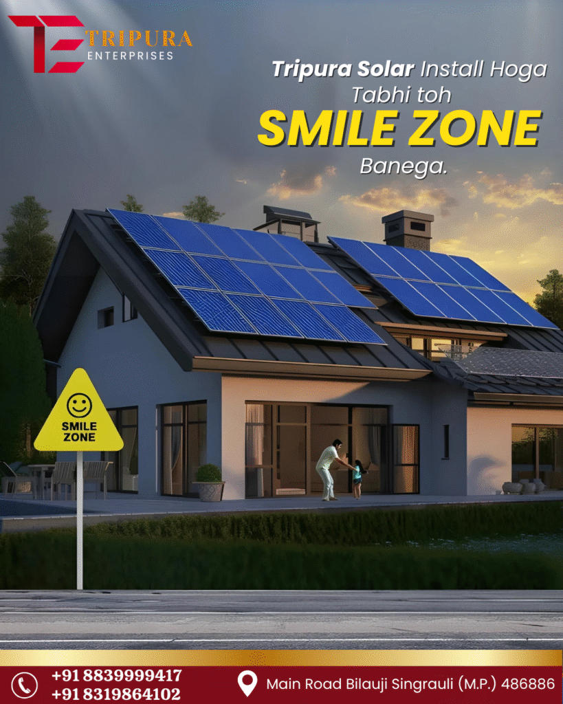 At Tripura Enterprises, we believe that true happiness begins with sustainable choices. By switching to solar energy, you not only save money but also contribute to a greener tomorrow. That’s why we say – “Tripura Solar Install Hoga, Tabhi Toh SMILE ZONE Banega.”